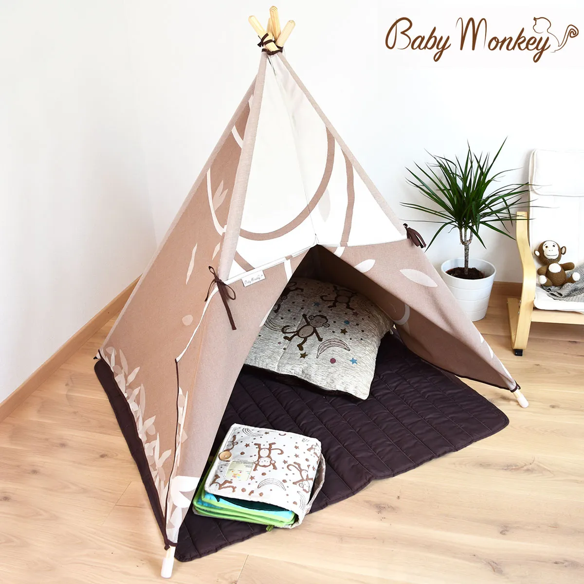 BabyMonkey Tipi Zelte sind mit vieler Aufmerksamkeit auf Detail und Materialien hergestellt. Sie sind aus 100% Baumwolle, natürlich und ungiftig, denn wir verwenden nur Oeko-Tex zertifizierte Rohstoffe. Die Zeltstangen sind aus unbehandeltem widerstandsfähigem und leichtem Kiefernholz und sie enthalten keine schädliche chemische Substanz. Die rutschfesten gummidichtungen an den unteren Enden der Stöcke verleihen der Struktur mehr Stabilität und schützen die empfindlichsten Böden.