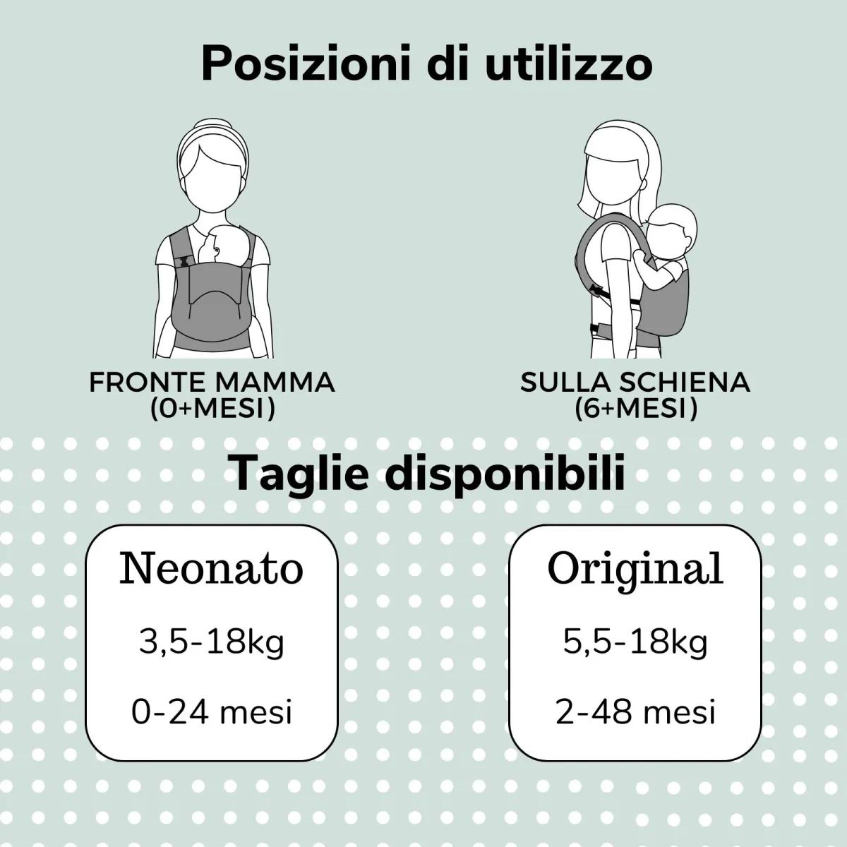 Die ergonomische Kleinkindtrage ist ein wertvoller Verbündeter in all jenen Situationen, in denen der Kinderwagen unpraktisch ist, wie z.B. bei Bergwanderungen, Strandspaziergängen oder an überfüllten Orten.