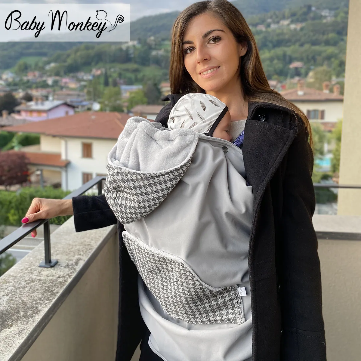Puede utilizar el Cobertor Babymonkey con cualquier portabebés (excepto los de un sola hombro) en pocos y sencillos pasos.