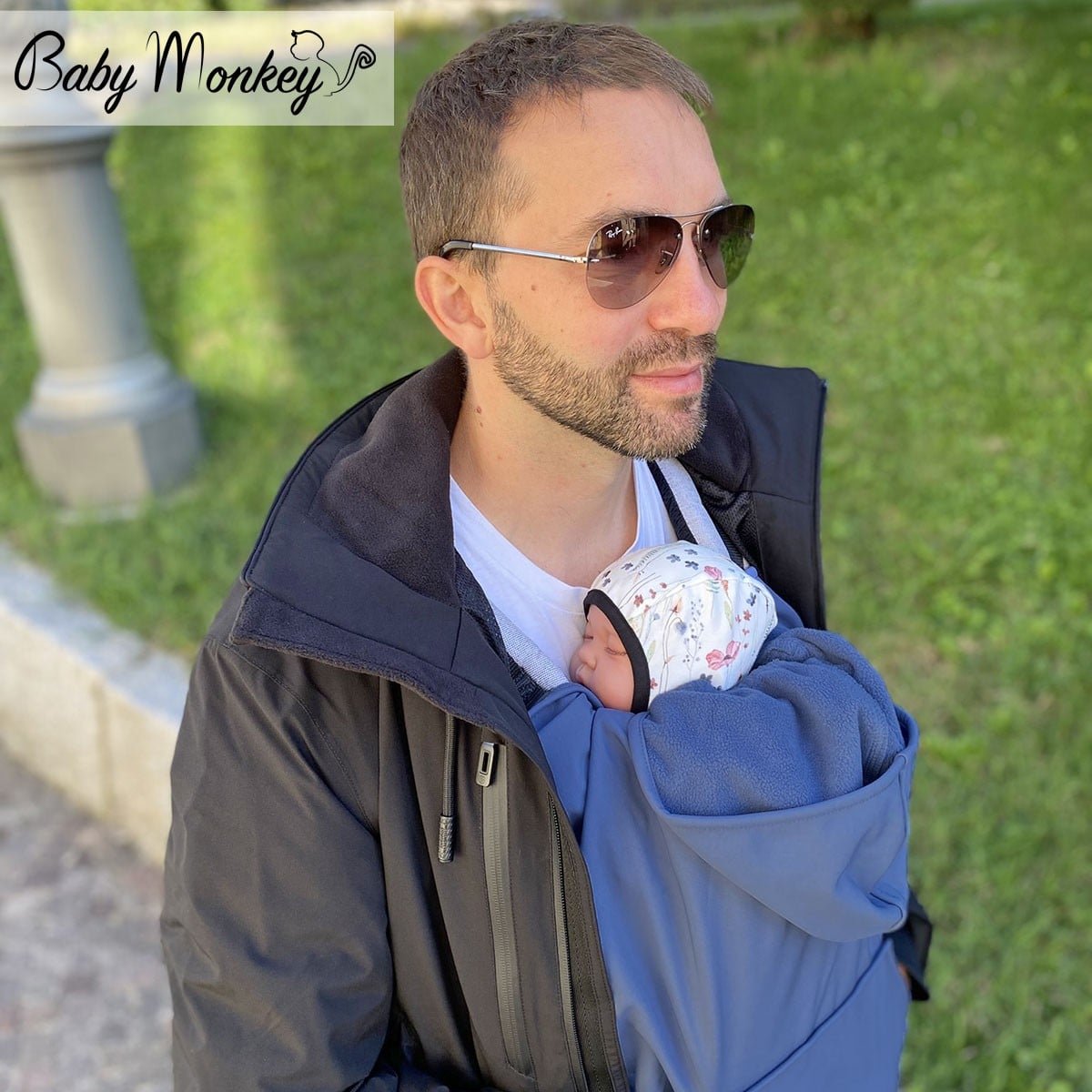 Desvestirse es más fácil y cómodo usando el cobertor de porteo en lugar de poner la chaqueta al bebé.