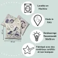 Les housses de coussin pour enfants BabyMonkey sont fabriqués en Italie, en utilisant matières premières certifiées et pigments non toxiques, ils sont donc sûrs pour la santé des bébés.