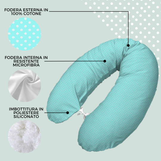 Completamente lavabile in lavatrice, sia l'imbottitura che la federa, per garantire la massima igiene